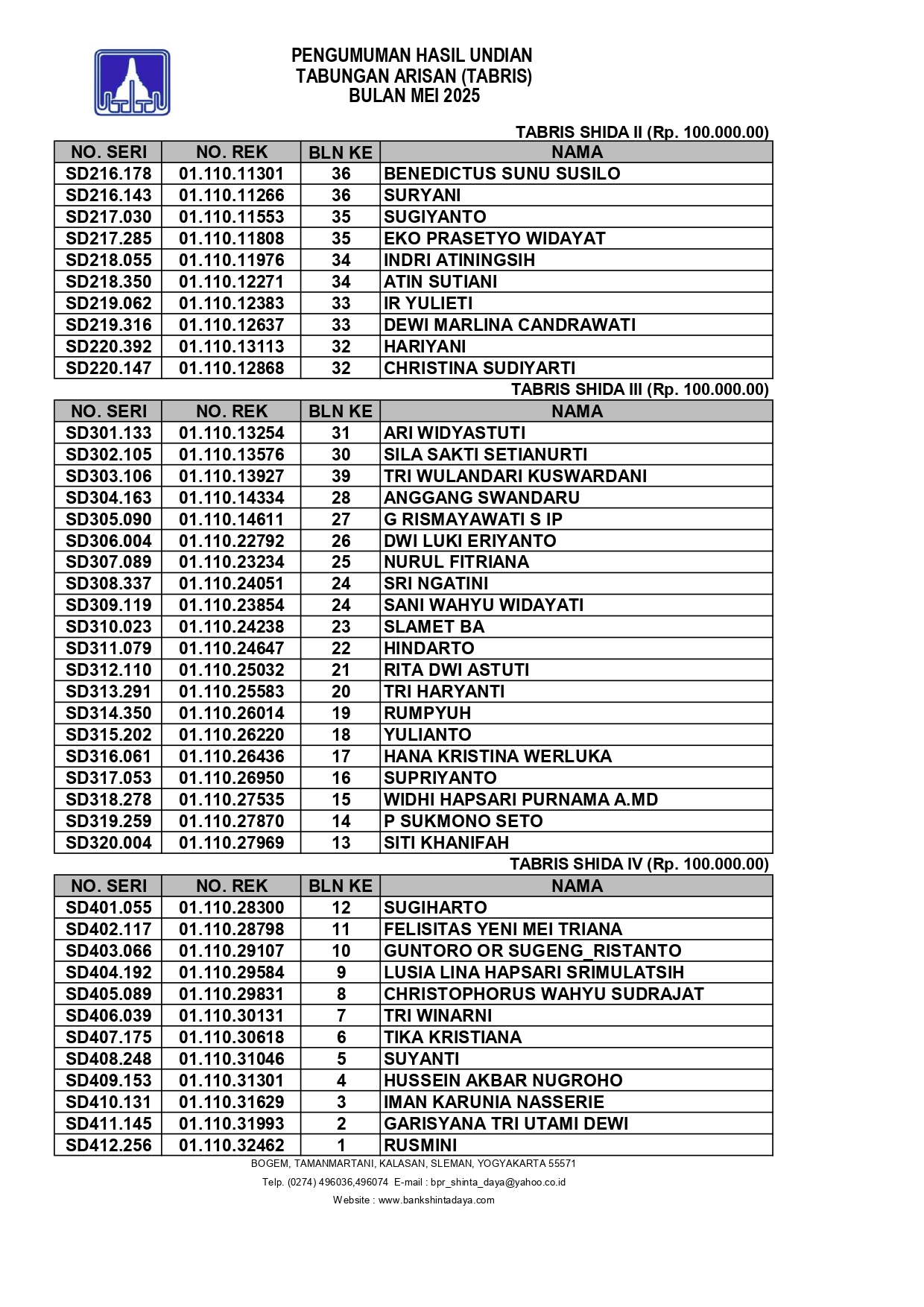 ucapkan πΊππππππ bagi Pemenang Undian TABRIS bulan Mei 2025 dan