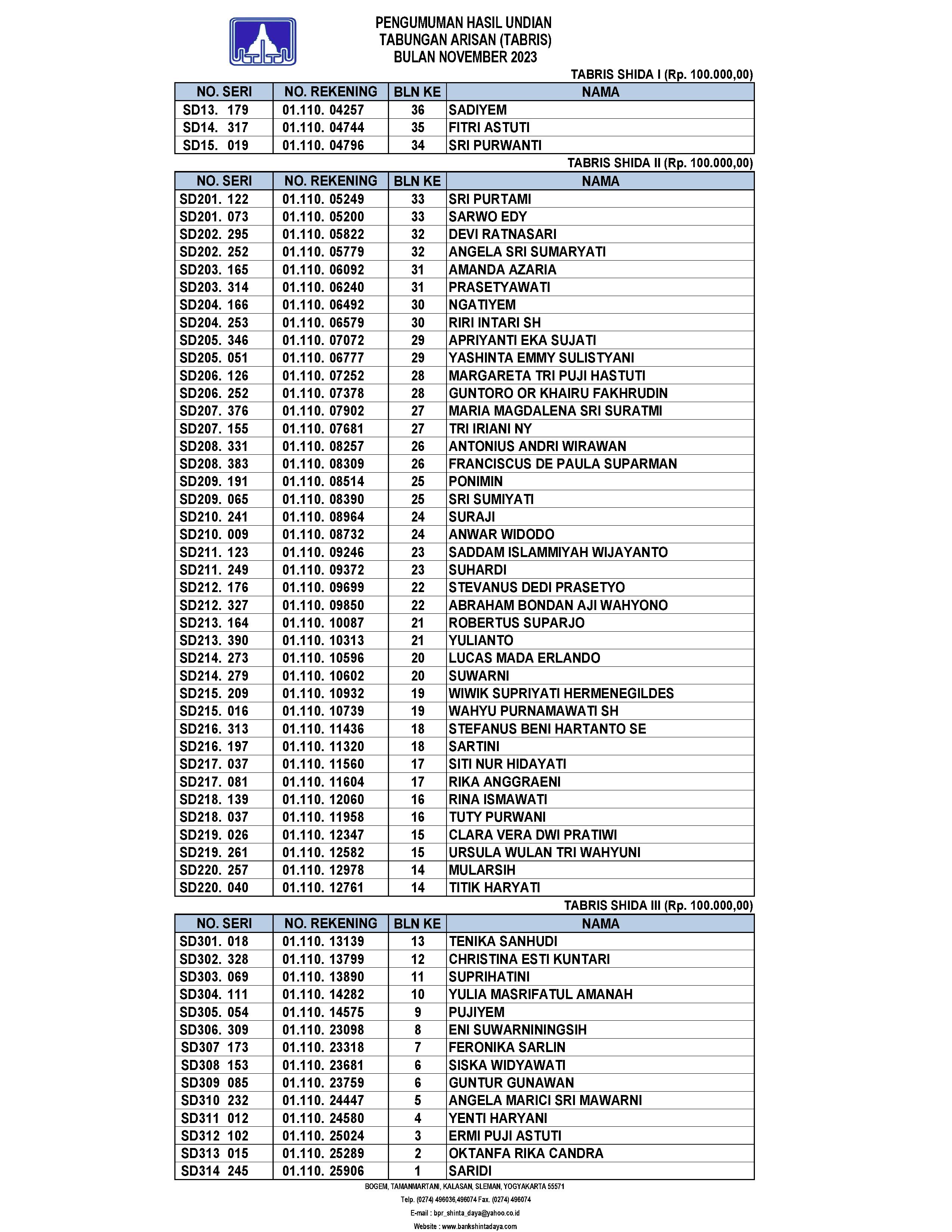 Berikut kami informasikan: β Pengumuman Undian Tabris Bulan November 2023