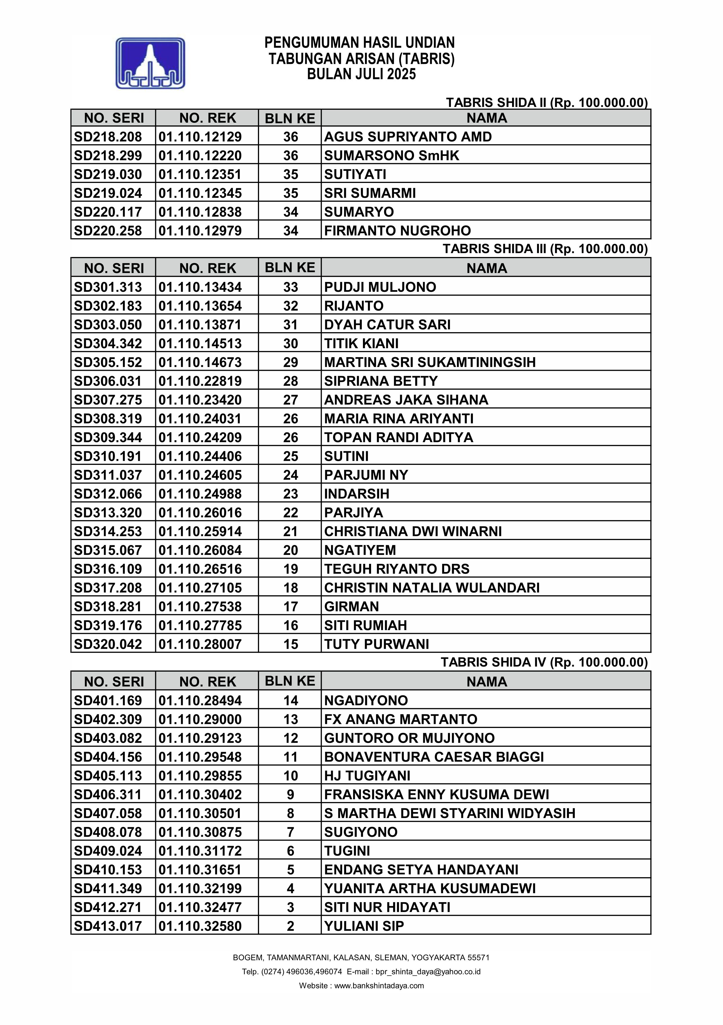 Pengumuman Undian TABRIS SHIDA Juli 2025.